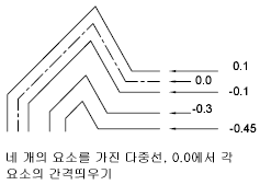 기존의 여러 줄 요소와 새 여러 줄 요소의 간격띄우기, 색상, 선종류 등의 요소 특성을 설정합니다.