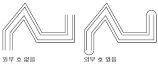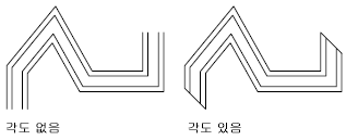 각 여러 줄 세그먼트 정점에서의 접합부의 표시를 조정합니다. 접합부를 마이터라고도 합니다.