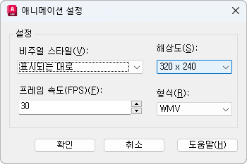 3D 탐색의 애니메이션 기록을 위한 설정을 지정합니다.