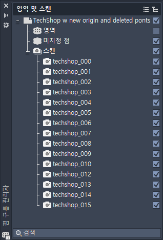 - 점 구름, 영역 또는 스캔 파일을 이름별로 검색합니다.