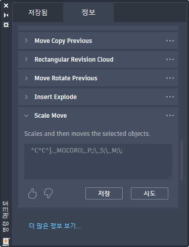 저장 - 사용할 수 있는 위치에서 저장됨 탭으로 매크로 정보를 명령 매크로 형태로 추가합니다.