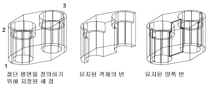 기존 객체를 슬라이스, 즉 분할하여 3D 솔리드와 표면을 수정합니다.
