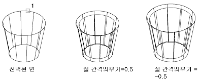 연속하여 접하는 여러 면은 간격띄우기할 경우 단일 면으로 취급됩니다.