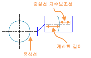 중심 표식과 중심선은 대칭 축 및 구멍의 중심에 대한 치수기입 참조입니다.