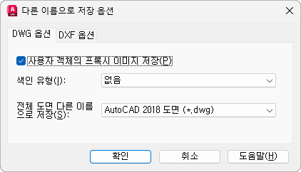 다른 이름으로 저장 옵션 대화상자의 색인 유형에서 도면층, 공간 또는 도면층 및 공간을 선택한 다음 확인을 클릭합니다.