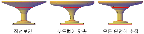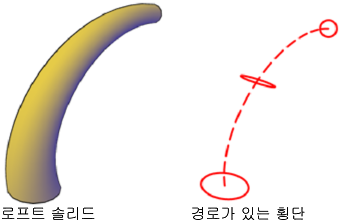 - 횡단 프로파일. 새로운 3D 객체의 쉐이프를 정의하기 위한 일련의 횡단 프로파일을 선택합니다.