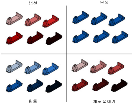 음영처리, 강조 및 색상 효과는 모형에서 면의 표시를 조정합니다.