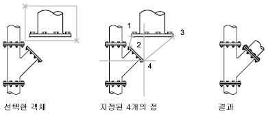두 쌍의 점을 선택한 경우에는 선택한 객체를 이동, 회전 및 축척하여 다른 객체와 정렬할 수 있습니다.