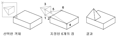 세 쌍의 점을 선택한 경우에는 선택한 객체를 3D로 이동 및 회전하여 다른 객체와 정렬할 수 있습니다.