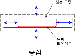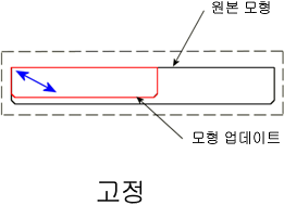 또한 "고정" 옵션을 선택할 수도 있습니다. 그러면 변경되지 않은 모형 형상이 업데이트 작업 전의 위치에 유지됩니다. 이 옵션을 선택하는 경우 뷰가 보다 적게 이동하므로 이 옵션이 기본 설정되는 경우가 많습니다.