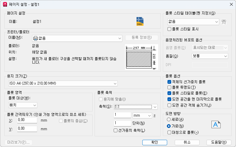 객체와 도면층에 지정된 선가중치가 플롯될지 여부를 지정합니다.