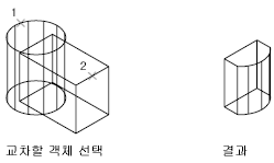 INTERSECT를 사용하면 둘 이상의 객체가 겹치는 공통 체적이나 면적에서 복합 객체를 작성할 수 있습니다. INTERSECT는 겹치지 않는 부분을 제거하여 나머지 부분에서 복합 객체를 작성합니다.