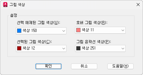 선택된 그립의 색상을 조정합니다. (GRIPHOT 시스템 변수)