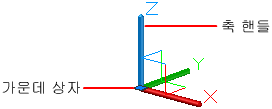 3D 객체 및 하위 객체를 이동하려면 3D 장치를 클릭하여 3D 공간 내 임의의 위치로 끕니다. 장치의 가운데 상자(또는 기준 그립)로 표시되는 이 위치는 이동의 기준점을 설정하며 선택한 객체를 이동할 동안 UCS의 위치를 임시로 변경합니다.