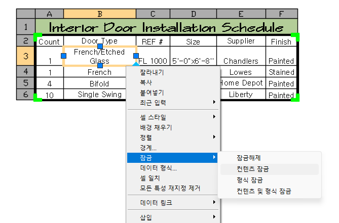 기본적으로 데이터 추출 테이블의 모든 셀이 편집에 대해 잠겨 있고 형식 변경에 대해 잠금 해제됩니다. 해당 테이블의 바로 가기 메뉴에 액세스하여 데이터 및 형식 편집에 대해 셀을 잠그거나 잠금 해제할 수 있습니다.