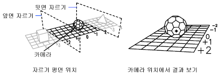 카메라와 전면 자르기 평면 사이에 위치한 객체를 가립니다.
