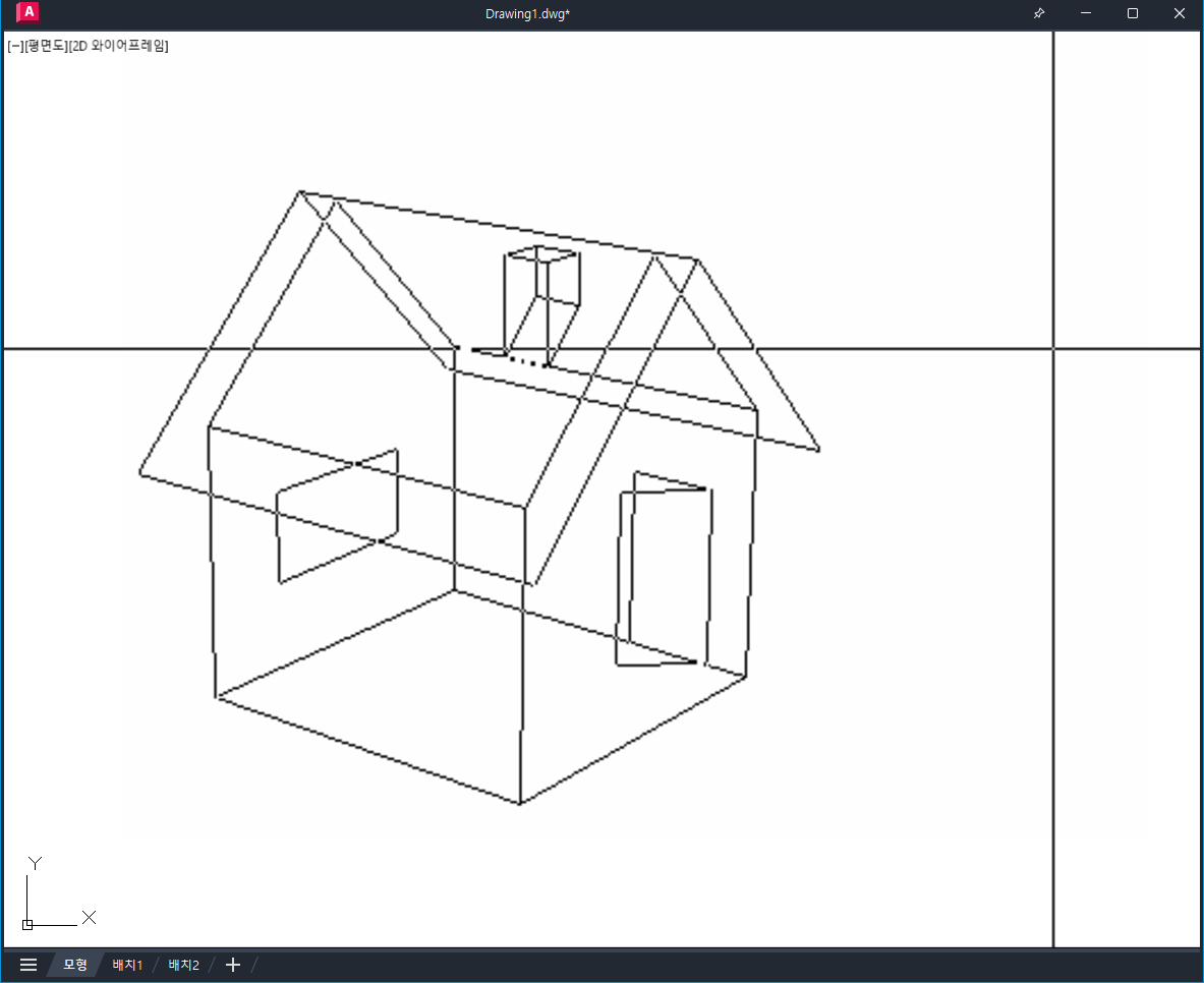 객체 선택 프롬프트에서 Enter 키를 누르면 DVIEWBLOCK는 미리보기 이미지를 표시합니다. 111-단위 영역에 왼쪽 아래 구석의 원점을 사용하여 사용자 고유의 DVIEWBLOCK 블록을 작성할 수 있습니다. 다음 그림은 기본 DVIEWBLOCK을 사용하여 뷰를 설정한 예입니다(그래픽 커서를 이동하면 뷰가 조정됩니다.).