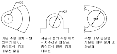 그림과 같이 서로 다른 여러 지름 치수 스타일을 작성할 수 있습니다.