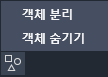 | 찾기 | 객체 분리 | 도면 영역에서 선택된 객체를 숨기거나 이전에 숨겨진 객체를 표시합니다. |