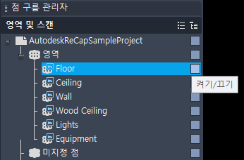 영역 또는 스캔 가시성을 켜거나 끄려면 켜기/끄기 아이콘을 클릭합니다.