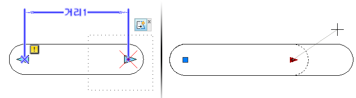 점 매개변수에 적용된 신축 동작은 임의의 방향으로 지정된 거리만큼 선택한 객체를 이동하고 신축합니다.