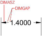 DIMGAP 값은 치수 선의 각 세그먼트 최소 길이로도 사용됩니다. 치수보조선 내에서 선형 치수의 구성요소를 찾으려면 두 화살촉(2 x DIMASZ), 치수 선 세그먼트(2 x DIMGAP), 치수 문자 양쪽 간의 간격(다른 2 x DIMGAP) 및 치수 문자 길이에 필요한 충분한 공간이 있어야 합니다.