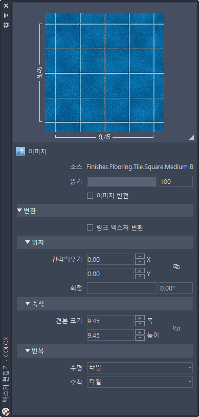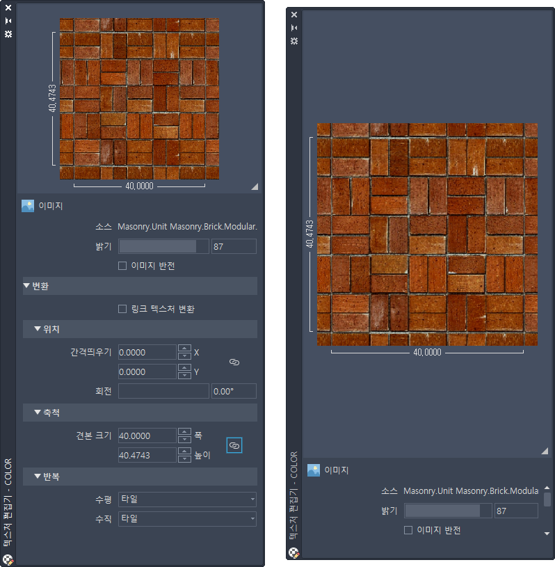 | 텍스처 유형 | 위치 | 축척 | 반복 |