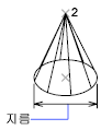 원추 밑면의 지름을 설정합니다.