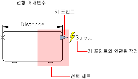 동작은 그립을 처리할 때 동적 블록 참조 형상이 이동하거나 변경되는 방식을 정의합니다.