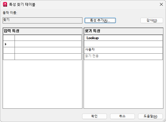 동적 블록 정의 내에서 사용자 특성에 대한 찾기 테이블을 작성 및 수정합니다.