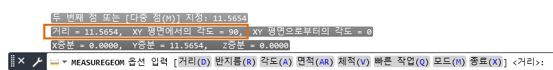 측정값이 명령 윈도우에 표시됩니다. 필요에 따라 F2 키를 눌러 명령 윈도우를 확대합니다.