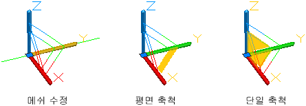 3D 객체의 크기를 균일하게 변경하거나 지정된 축 또는 평면을 따라 변경합니다.