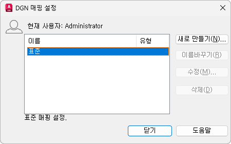 DGN 데이터 가져오기 또는 내보내기를 위한 매핑 설정을 작성, 수정 및 삭제하고 이름을 바꿉니다.