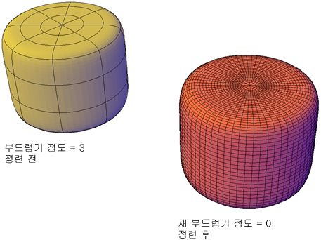 부드럽기 정도가 1 이상인 모든 메쉬를 정련할 수 있습니다.