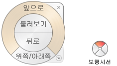 주: 미니 휠이 표시되어 있으면 가운데 마우스 버튼을 누른 상태로 초점이동하고, 휠 버튼을 스크롤하여 줌 확대/축소하고, Shift 키를 누른 상태로 가운데 마우스 버튼을 눌러 모형을 궤도 이동할 수 있습니다.
