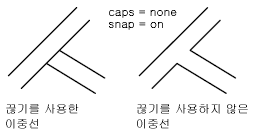 이중선을 스냅하는 경우 이중선, 선 또는 호에 끊기를 추가할지 여부를 지정할 수 있습니다.