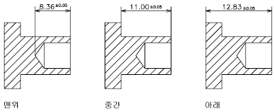 주 치수 문자에 대한 공차 값의 수직 위치를 조정할 수 있습니다. 공차는 치수 문자의 맨 위, 중간, 또는 맨 아래에 정렬할 수 있습니다.
