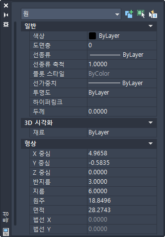 AutoCAD LT에서 AutoCAD 객체의 특성을 볼 때 일부 특성을 사용하지 못할 수 있습니다.