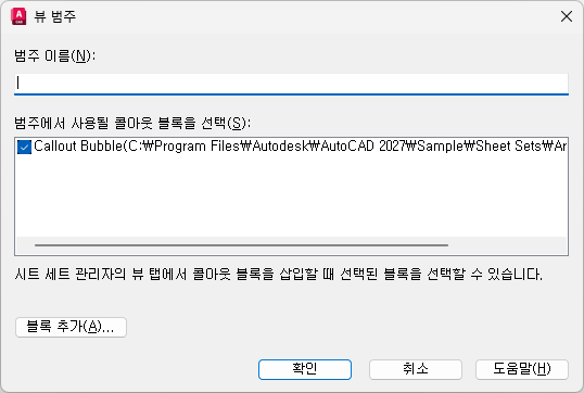 현재 뷰 범주에 적절한 콜아웃 블록을 나열하는 방법을 제공합니다.