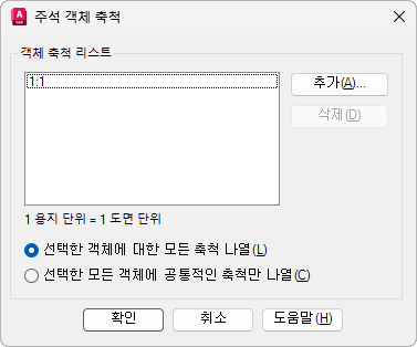 선택한 주석 객체에 지원되는 축척을 추가 또는 삭제합니다.