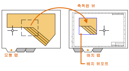 배치 뷰포트는 모형 공간 뷰를 표시하는 객체입니다. 배치의 도면 공간에서 배치 뷰포트를 작성, 축척 및 배치할 수 있습니다.