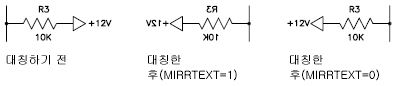 주: 기본적으로 문자 객체를 대칭할 때 문자 방향은 변경되지 않습니다. 문자가 반전되도록 하려면 MIRRTEXT 시스템 변수를 1로 설정하십시오.