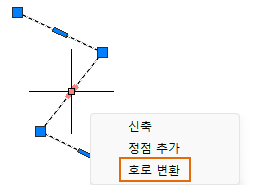 선택한 끝 그립에서 연장되는 폴리선에 정점이 추가됩니다.