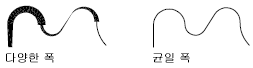 정점 편집 옵션의 폭 옵션을 사용하여 세그먼트의 시작 및 끝 폭을 변경할 수 있습니다.