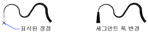 표시된 정점 바로 뒤에 오는 세그먼트의 시작 및 끝 폭을 변경합니다.