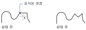 폴리선의 표시된 정점 다음에 새 정점을 추가합니다.