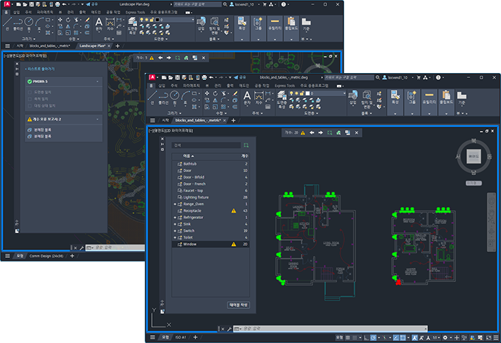 - 모든 블록의 인스턴스 개수를 계산합니다. 개수 팔레트를 사용하여 현재 도면에서 개수가 계산된 모든 블록을 표시하고 관리합니다.