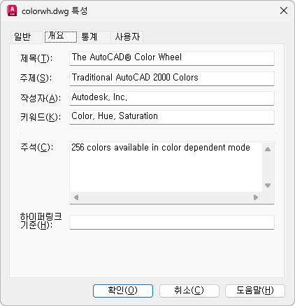 요약 탭(도면 특성 대화상자)