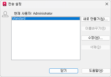 현재 강조된 전송 설정의 이름을 바꿉니다.