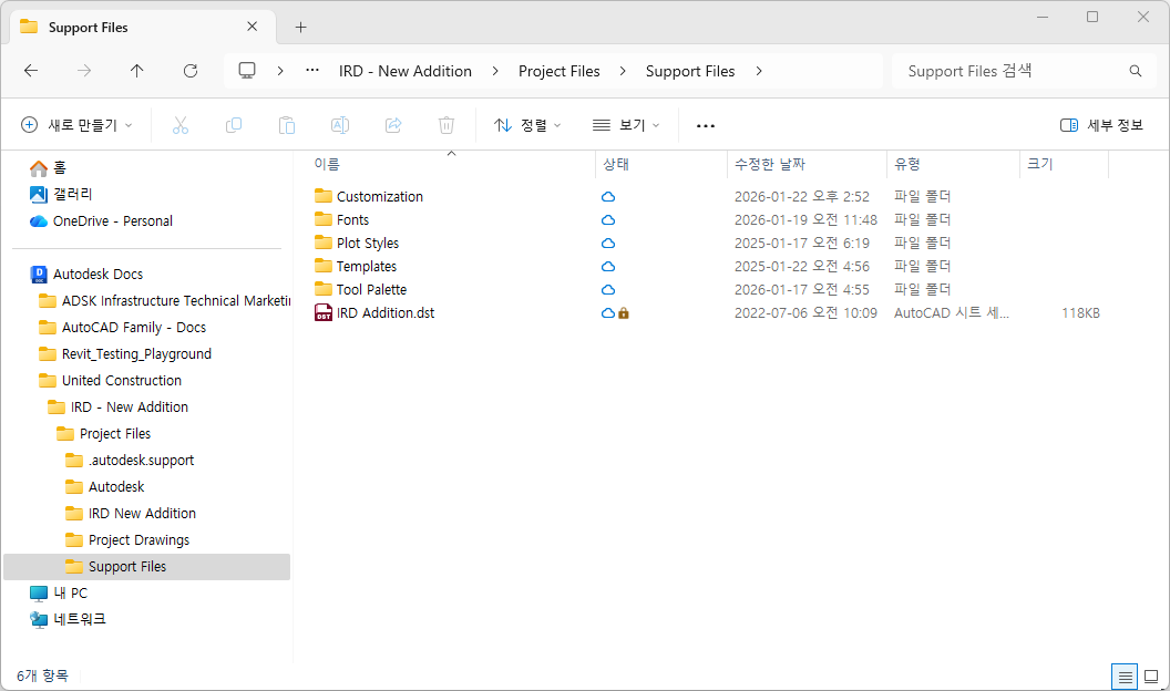 로컬 폴더에 추가된 지원 파일은 Desktop Connector를 통해 Autodesk 프로젝트와 동기화됩니다.